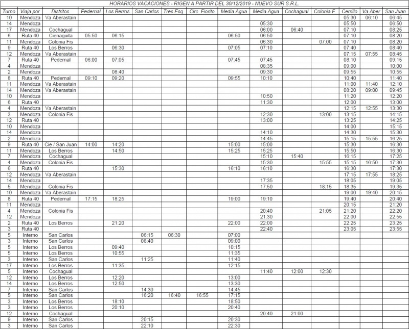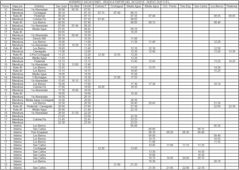 El 30 de diciembre comenzo a regir los nuevos horarios de colectivo de la empresa que transporta a los sarmientinos, es por ello que optamos por ayudarte para que tengas a mano y sepas el recorrido.
