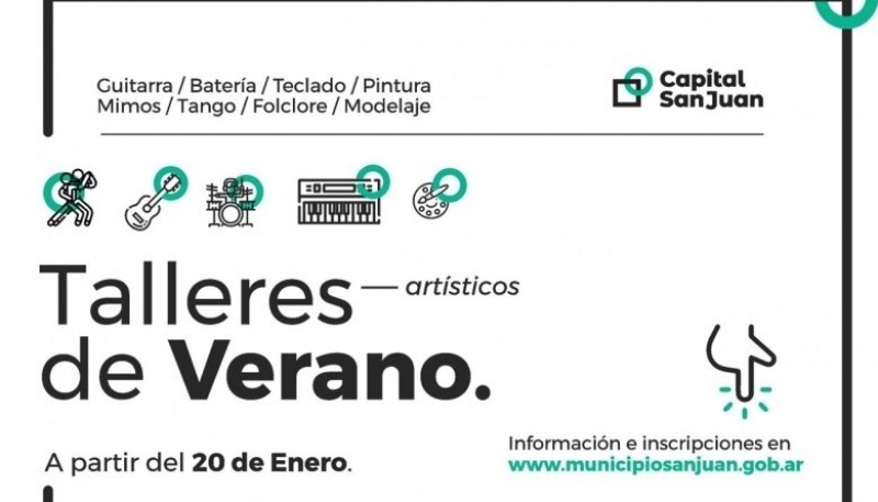 Nuevamente a través de la Secretaría de Cultura, la Municipalidad de Capital ofrece capacitaciones gratuitas para aprovechar en vacaciones. Se trata de 8 talleres de verano que se dictarán en la ex Estación San Martín y otras entidades intermedias. Los talleres son: guitarra, folclore, pintura, mimo, teatro, batería, teclado, tango y modelaje. Los interesados deberán inscribirse desde este viernes por diversas vías. Una de ellas es a través de un formulario online en http://culturainscripciones.municipiosanjuan.gob.ar/carga También se reciben inscripciones en la Casa de Cultura de Capital, sito en Libertador 568 este y en el Centro Cultural Ex Estación San Martin de Avenida España e Ignacio de la Roza. No hay límite de edad y las inscripciones serán hasta agotar el cupo. Los talleres se extenderán hasta el último día hábil del mes de febrero y no hay que llevar ningún material o elemento específico para participar. Los talleres son: • Taller de Guitarra El profesor es Marcos Abarca y dará clases los sábados, de 9 a 11 en el Centro Cultural Estación San Martín. Los talleres de verano tienen duración de 1 mes y medio, por lo que se sugiere inscribirse con algún conocimiento previo a este taller. • Taller de folclore En este caso el profesor Jorge Becerra irá a la Unión Vecinal de Villa América, los lunes y miércoles desde las 20. También enseñará en el Centro de Jubilados Integrados de calle Santa Fe pasando Urquiza. Las clases serán los viernes a partir de las 17. Se trabaja especialmente con la aplicación de la Danza Terapia. Este taller tiende a la importancia de la armonía física, marcando los ritmos, no buscando la excelencia de manera prioritaria, sino la participación, artística y social. • Taller de pintura Alberto Calo brindará clases los martes y jueves de 17 a 19 en el Centro Cultural Estación San Martín. • Taller de mimo y teatro Juan Carlos Carta tiene a su cargo está capacitación los días martes y jueves de 20.30 a 22.30 en el Centro Cultural Estación San Martín. El teatro es una forma colectiva de expresión artística, es un arte vivo que se sintetiza en la relación actor-público. Se apoya en el juego para desarrollar los propios recursos expresivos y el conocimiento de la técnica. Este Taller busca sensibilizar al estudiante para desarrollar su sentido de apreciación del arte, en general, y del teatro, en particular; va de lo simple a lo complejo. • Taller de batería Ricardo Soria dictará clases los martes y sábados de 16 a 18 en el Centro Cultural Estación San Martín. • Taller de teclado Orlando Tejada estará a cargo de la enseñanza los lunes y miércoles de 18 a 20 en el Centro Cultural Estación San Martín. • Taller de tango Gustavo Coliguante irá a la Unión Vecinal Comandante Cabot u otras que lo soliciten, en días y horarios a acordar. • Taller de modelaje Gabriel Moreira capacitará a los interesados los sábados de 10:30 a 12:30 en el Centro Cultural Estación San Martín. Aquí se valora a la imagen como mediadora de procesos de desarrollo humano, comprendiendo sus beneficios en cada una de sus dimensiones y teniendo claridad sobre las condiciones que hacen estos beneficios posibles. • Taller de pintura El profesor Alberto Calo está a cargo del taller destinado a desarrollar la creatividad a través de la pintura, tendiendo a la armonía de los colores y al equilibrio en los trazos. Fuente: Prensa Municipalidad San Juan