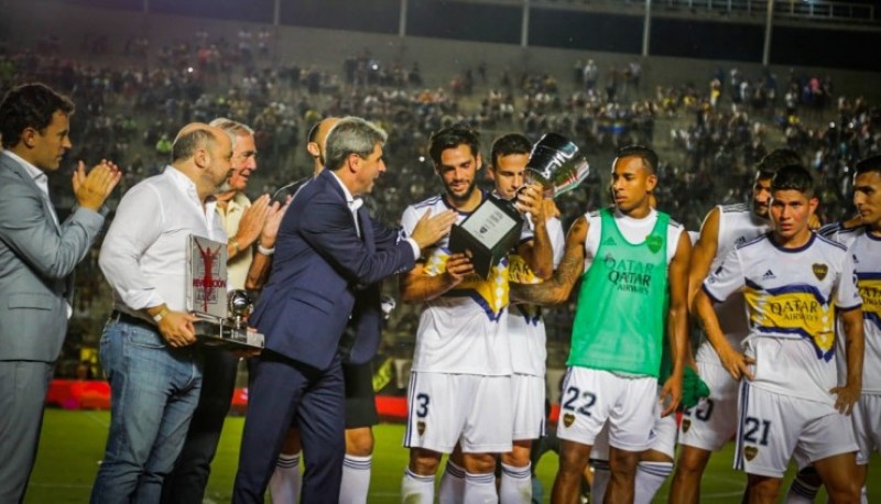 La fiesta del fútbol de verano se vivió a pleno en San Juan y ante un Estadio del Bicentenario colmado, el gobernador Sergio Uñac presenció el cierre del Torneo Internacional de Verano, en el que se disputó la Copa Schneider San Juan. Boca Juniors le ganó a Paranaense de Brasil por 3 a 1, quedándose así con el encuentro. En esta gran fiesta del fútbol también estuvieron el secretario de Estado de Deportes, Jorge Chica; el ministro de Desarrollo Humano y Promoción Social, Fabián Aballay; la ministra de Salud Alejandra Venerando; el ministro de Obras y Servicios Públicos, Julio Ortíz Andino; la ministra de Gobierno, Fabiola Aubone; el secretario de Seguridad, Carlos Munisaga; el secretario de Estado de Ambiente y Desarrollo Sustentable, Raúl Tello; el secretario General de Gobierno Juan Flores; el subsecretario de la Unidad Gobernación, Luis Rueda; el defensor del Pueblo Pablo García Nieto, el intendente de Capital Emilio Baistrocchi y el intendente de Pocito Armando Sánchez. Boca le ganó a Paranaense en un cierre lleno de emoción y con las tribunas repletas de fanáticos. Así, el equipo argentino se hizo de un nuevo encuentro de pretemporada. El Estadio del Bicentenario fue la sede de una serie de amistosos Internacionales de primer nivel donde se presentaron Boca, Racing, San Lorenzo, Huracán, Talleres, Atlético Paranaense (Brasil) y Universitario (Perú) y se convirtieron en los protagonistas del Fútbol Internacional de Verano. El torneo arrancó el pasado 11 de enero y concluyó este domingo. Previo al inicio del partido se realizó el descubrimiento de una placa conmemorativa del torneo de verano. En la ceremonia acompañaron al gobernador Uñac, el presidente de Boca Jorge Ameal, el secretario Chica, las leyendas de Boca, Jorge "El patrón" Bermúdez y Marcelo Delgado, además de dirigentes del equipo brasileño. A esto se sumó que autoridades de Proenter entregaron pelotas y placas al primer mandatario local. Esto lo hizo Javier Smichdt CEO de Proenter. Por otro lado, Uñac y Chica, entregaron un cheque por $200 mil pesos en beneficio a Fundame, en nombre de su titular, María del Valle García.
